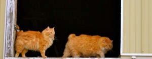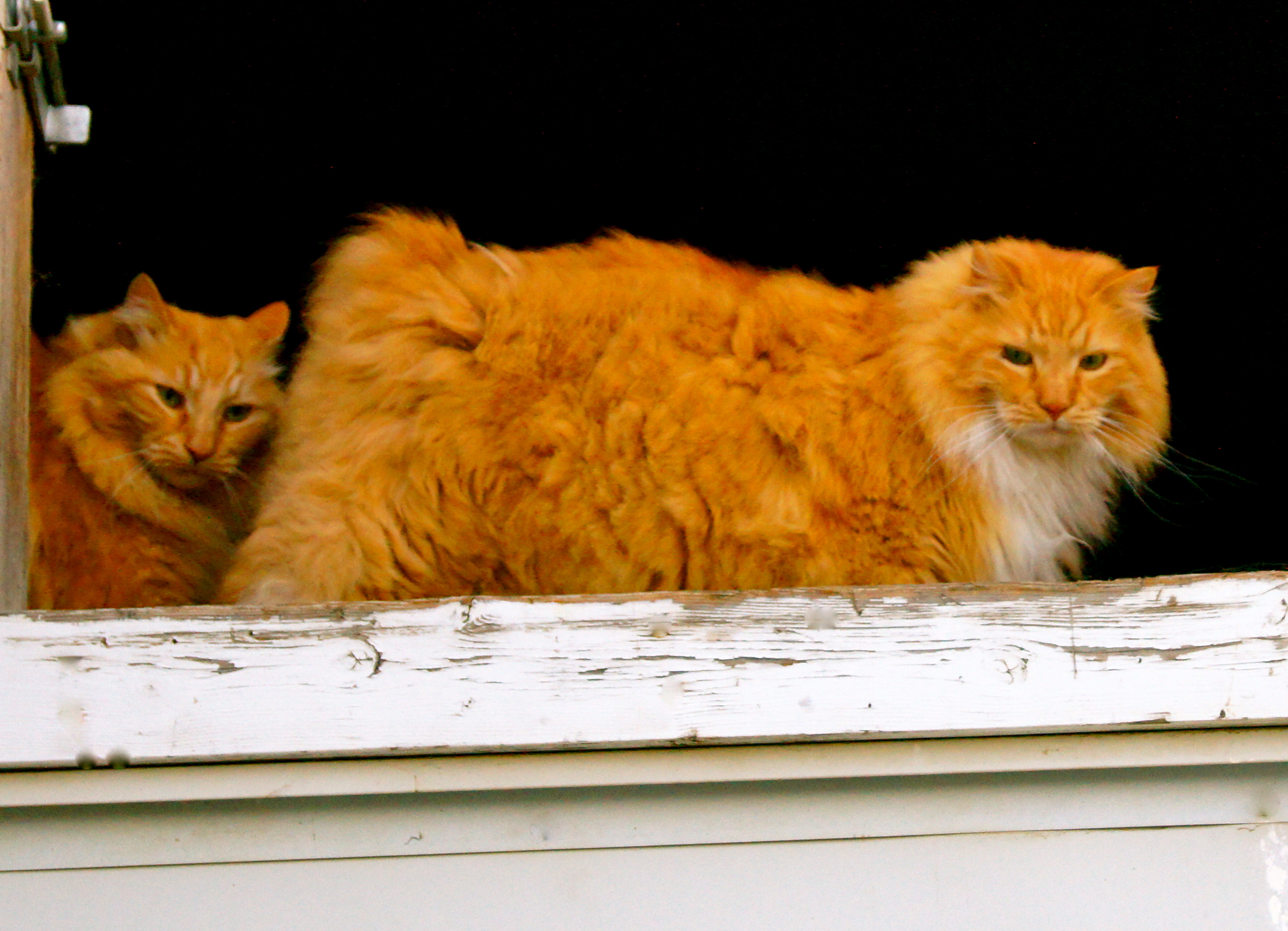 Ah here are the barn cats Pat and Jack…go ahead break into the barn and make their day! No the dogs do not go upstairs to visit them as they are afraid to! Pat and Jack are happy…they are getting new condos in the hay!