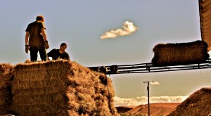 Son Greg is running the cart…by the way the hay cart is 100 years old…this cart was a wheat cart from way back when…wheels made of iron…yep heritage runs deep here…I bet my Grandpa Gunder built it or one of his brothers did…Wild Bill is catching the hay off the elevator and Robby Bobby Blue Eyes is watching…and notice in my barn and only in my barn…see the headers hanging on the wall behind Robby? There is the reason for my name…Hot Rod Cowgirl!