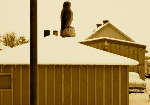 Have I introduced you to Mr. Porch Owl yet? He keeps the sparrows away from trying to fly into the windows on the front porch in the spring and summer…today he is looking quite crabby about being blown around with the wind out of the North…he is glaring at me and you.