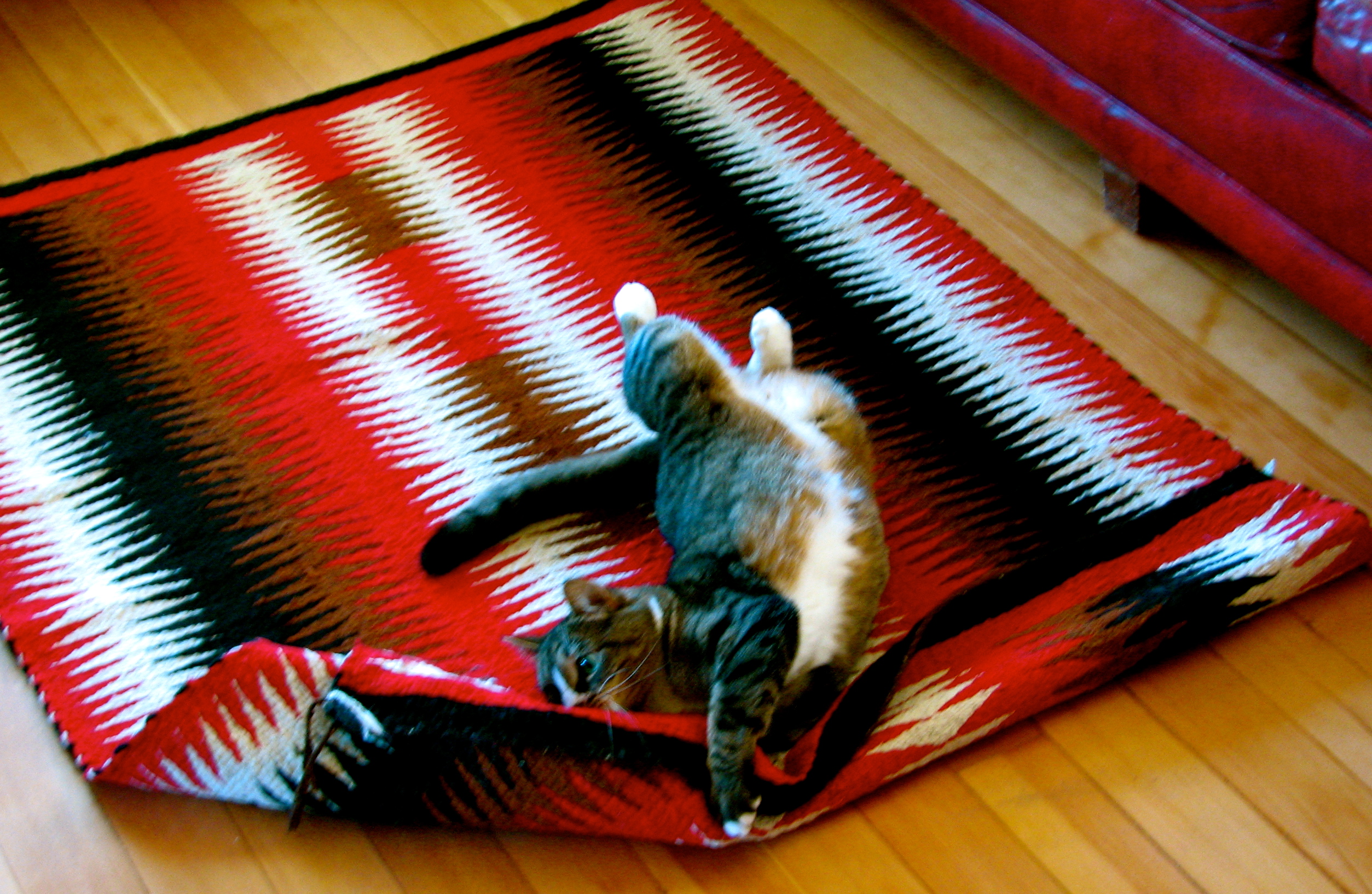 I love rolling and playing on my Navajo blanket as it scratches my fur…and it feels sooooo good!