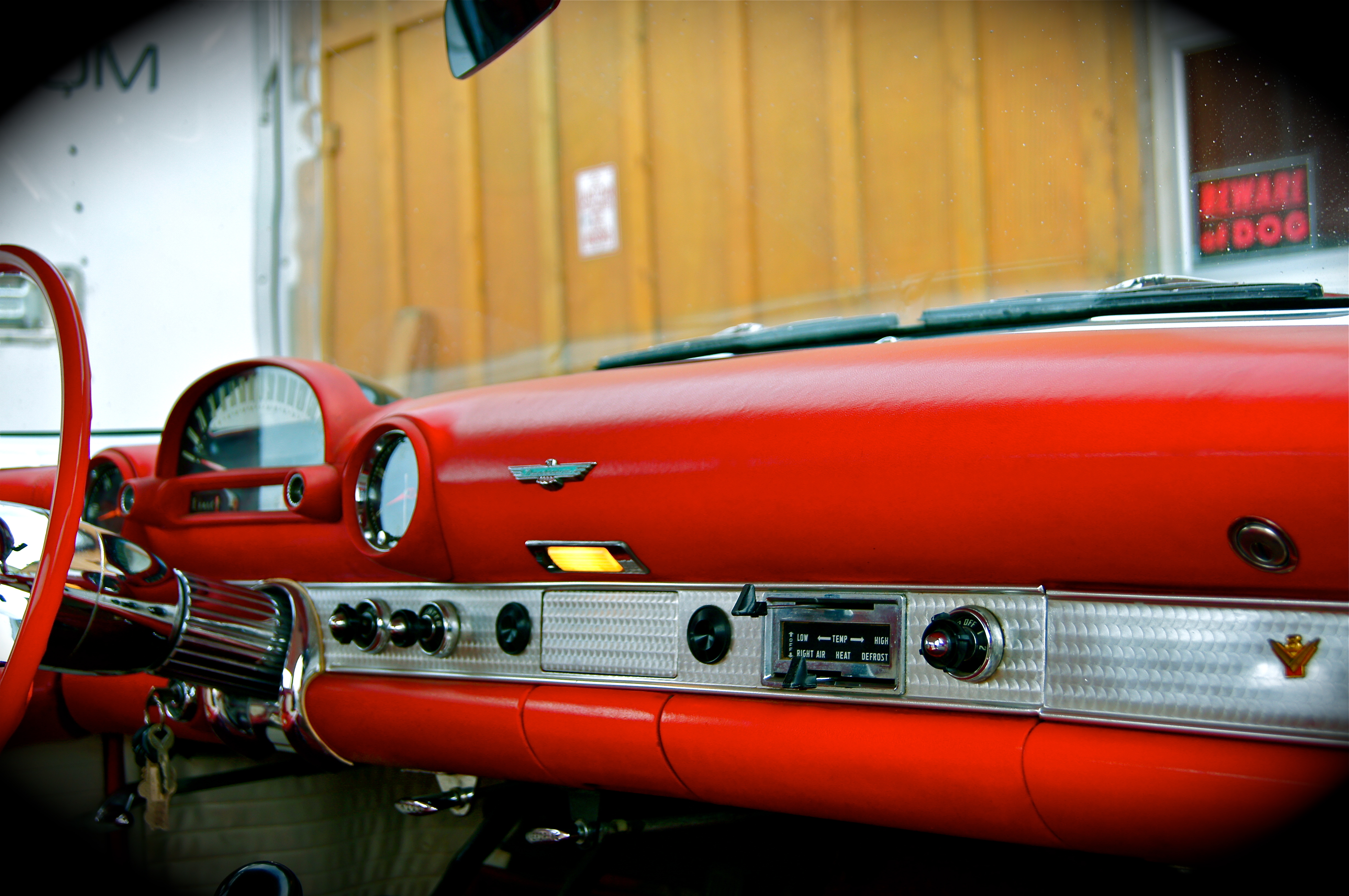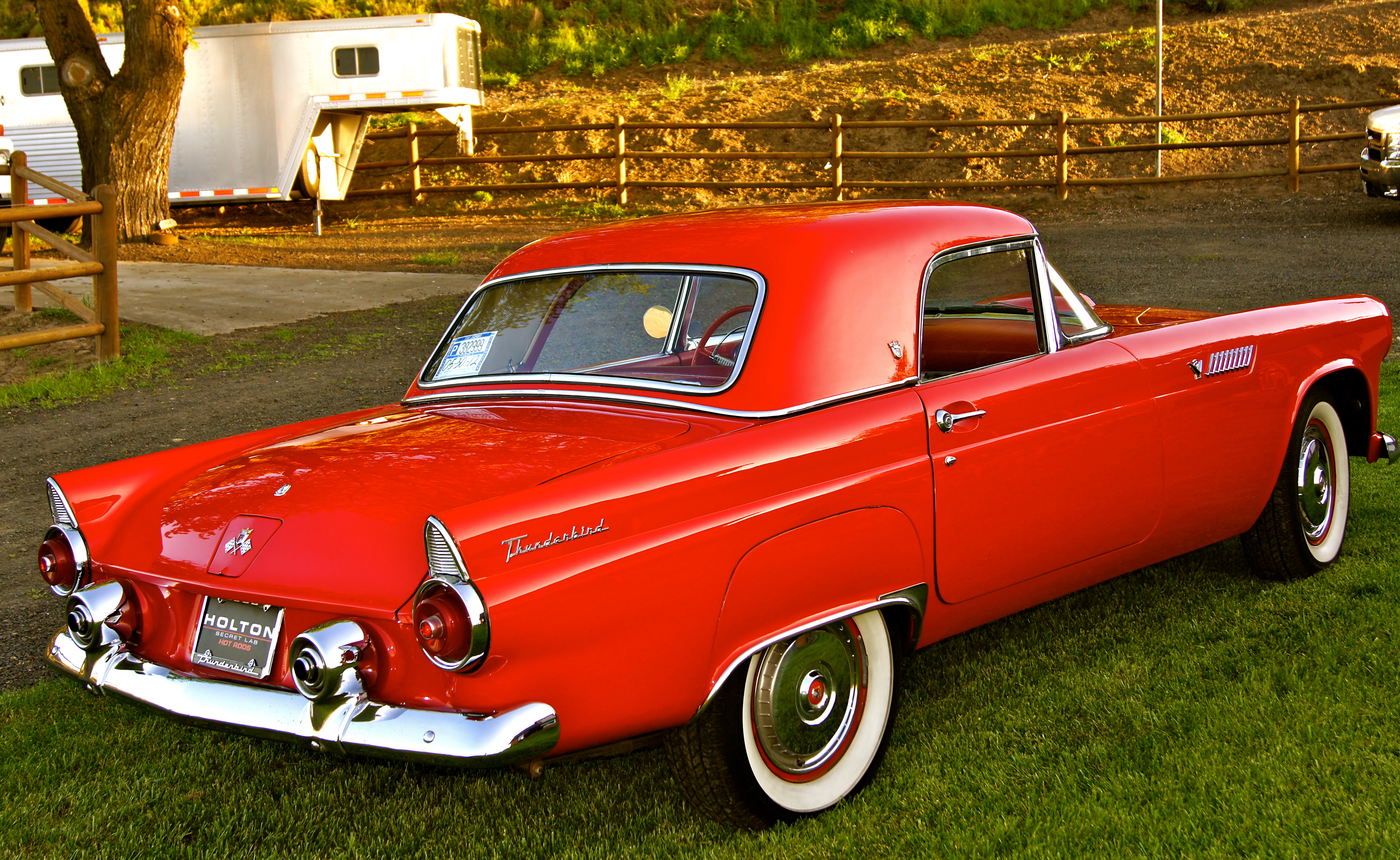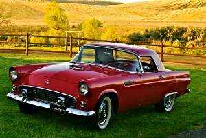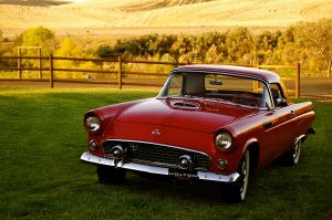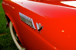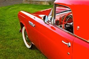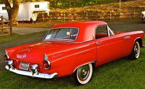 Lola is all class…leather dash and all original interior…6 volt…both tops…three speed overdrive…enough room for two people…and that beautiful Torch Red. She is also the first year of Thunderbird…and honestly if she was newer than a 1957 Bird I would not like her. I personally thought the 1955-1957 T-Birds were incredible.
