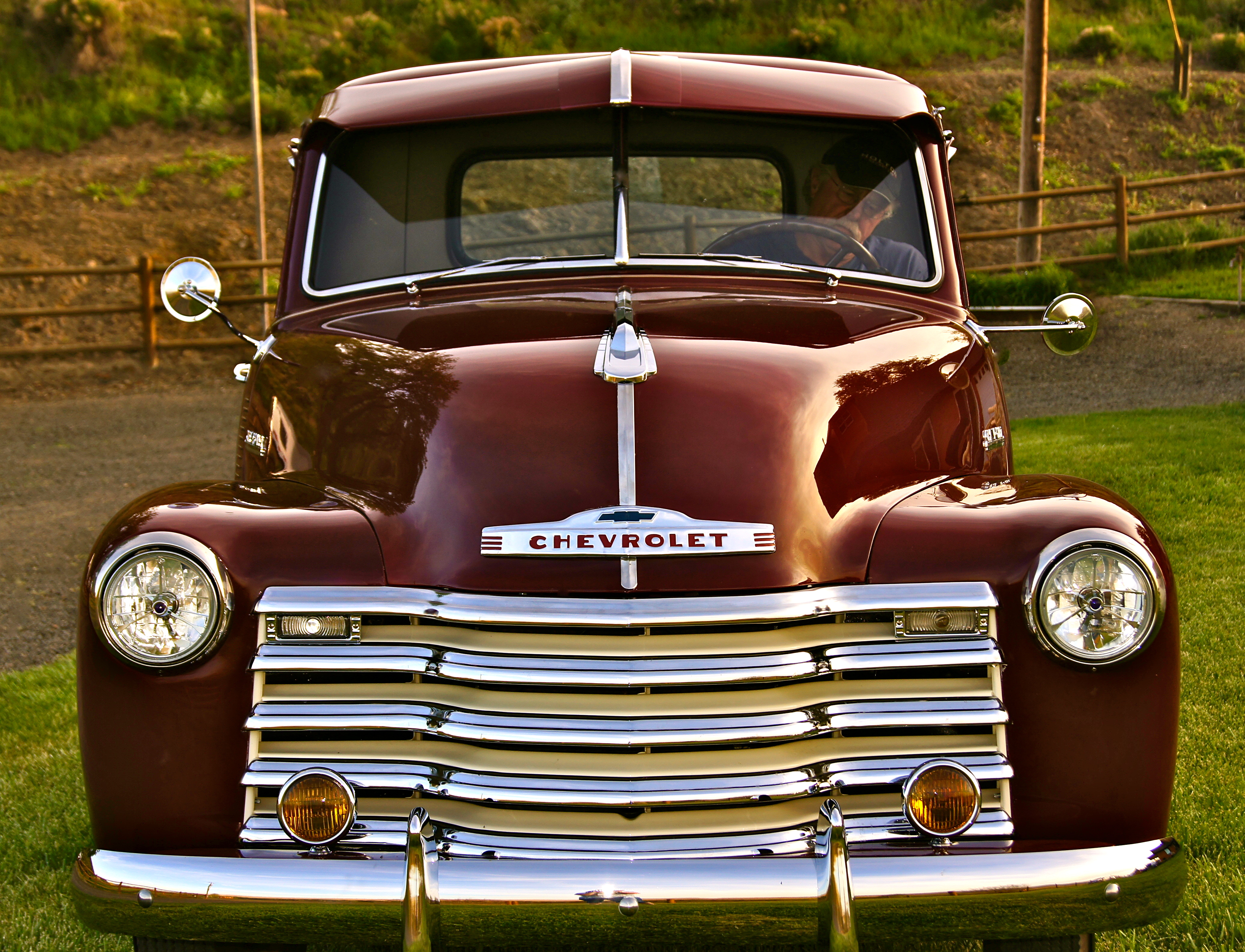 As spring slowly slides into Juniper Canyon, the evening light has become softer with golden highlights…perfect light to capture pictures of the various customer vehicles we have built. This “1951 Chevrolet Pick Up” came to us from Calgary, Alberta and it was time for pictures as the owner was on the road headed to our shop to take his truck home, as the job was complete:)