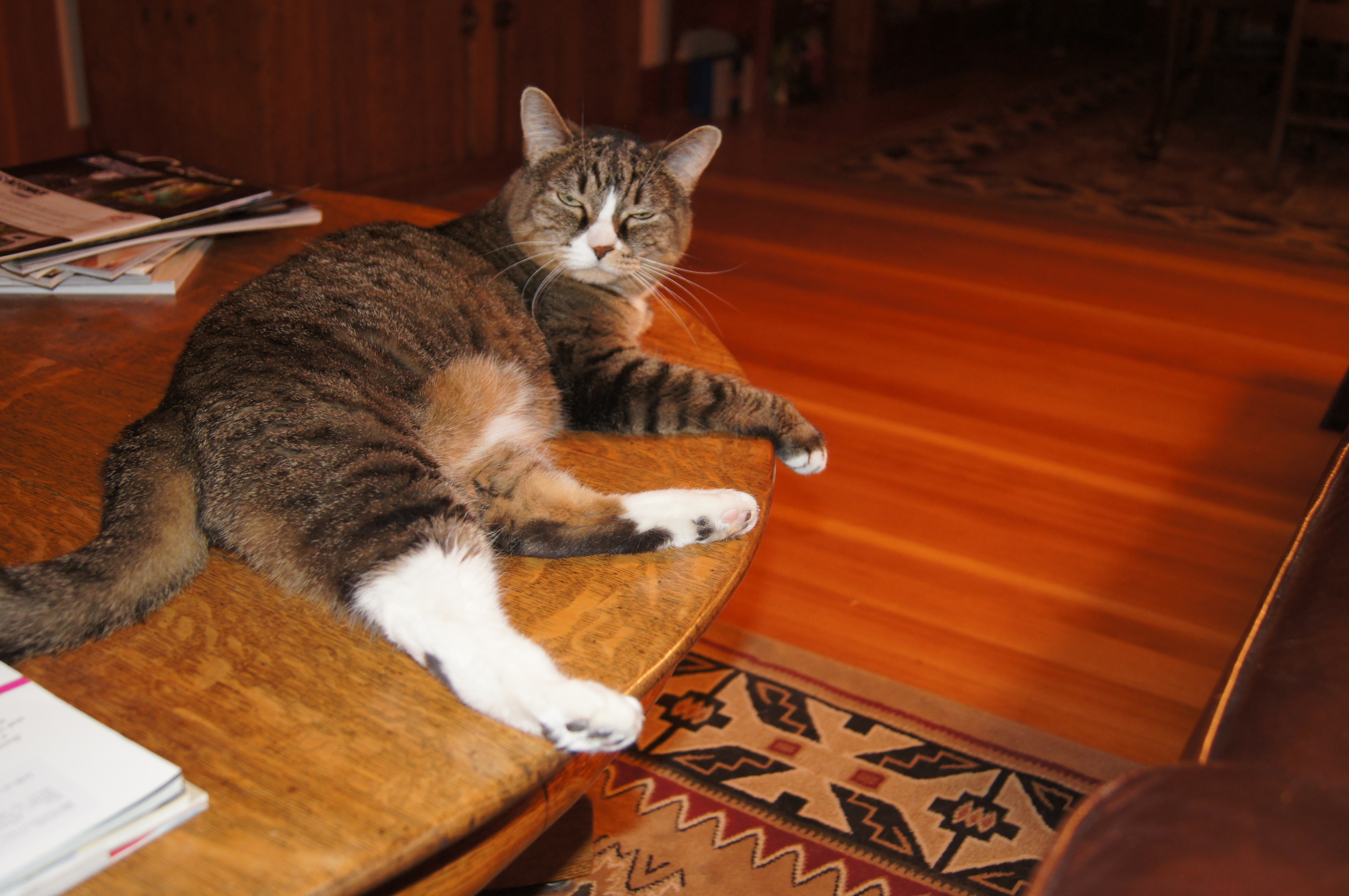 Minnie does too once she hears my voice….then it is meow meow meow….I did get a kick out of her posing on my coffee table…she is a natural for looking very catitude when we wants:) She gets so depressed when she knows I am leaving so going on trips is a challenge as I worry over her so much.