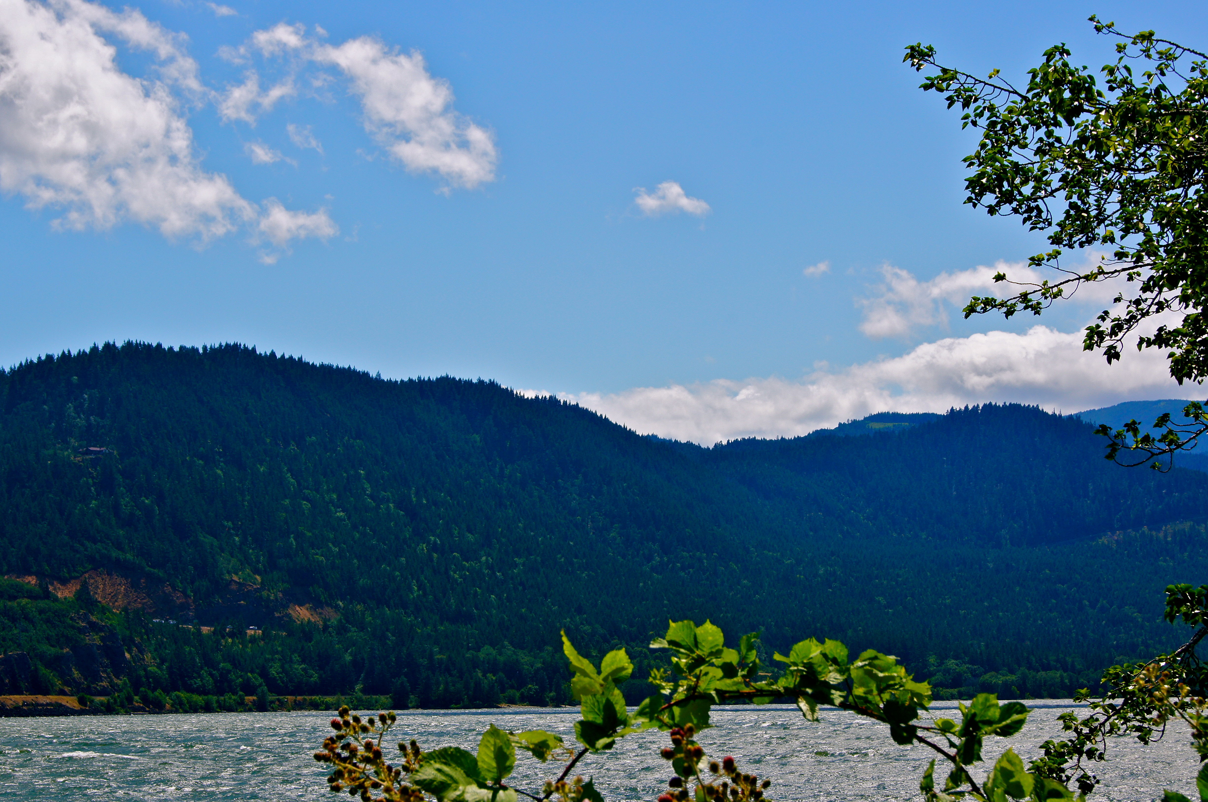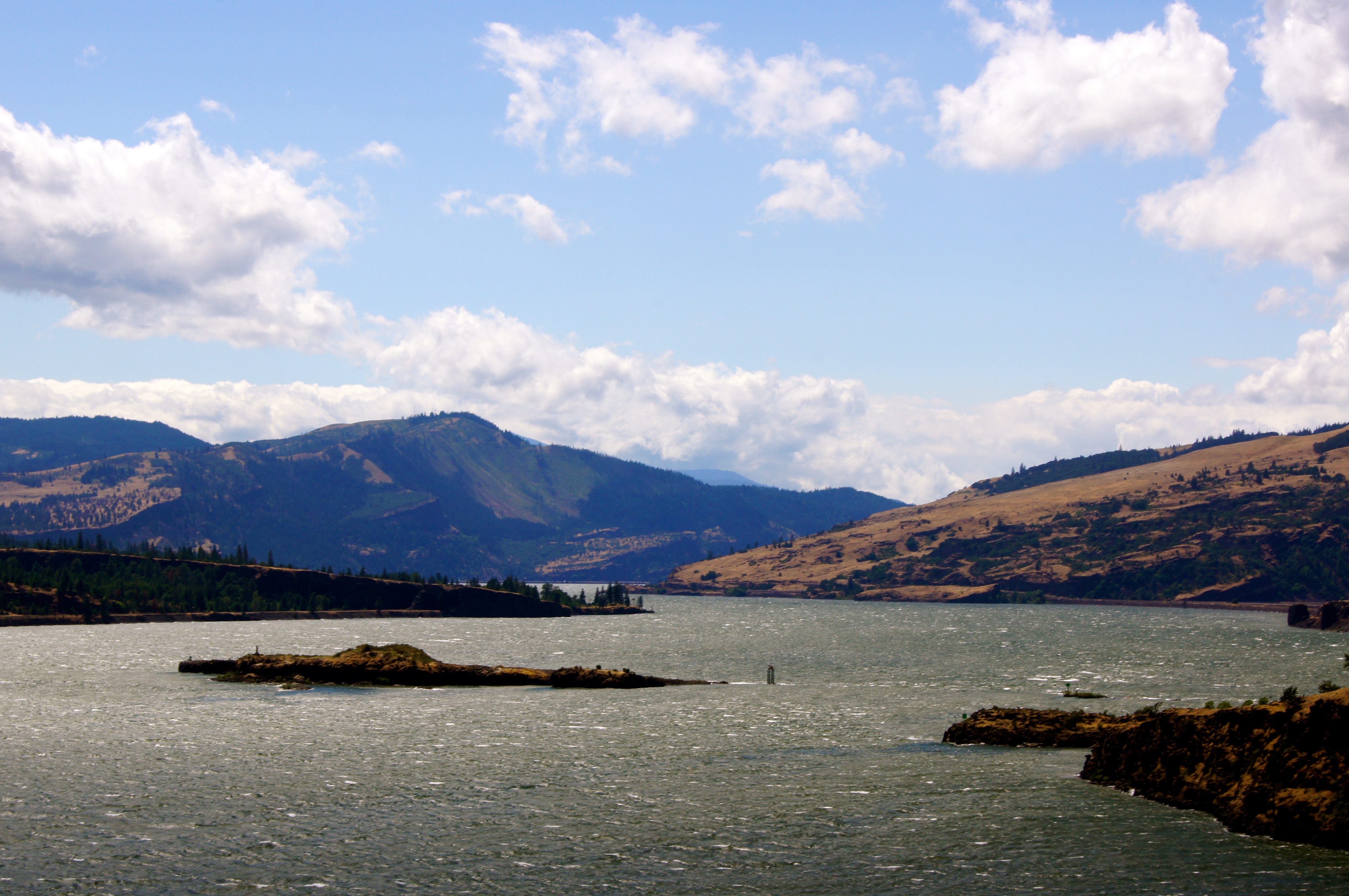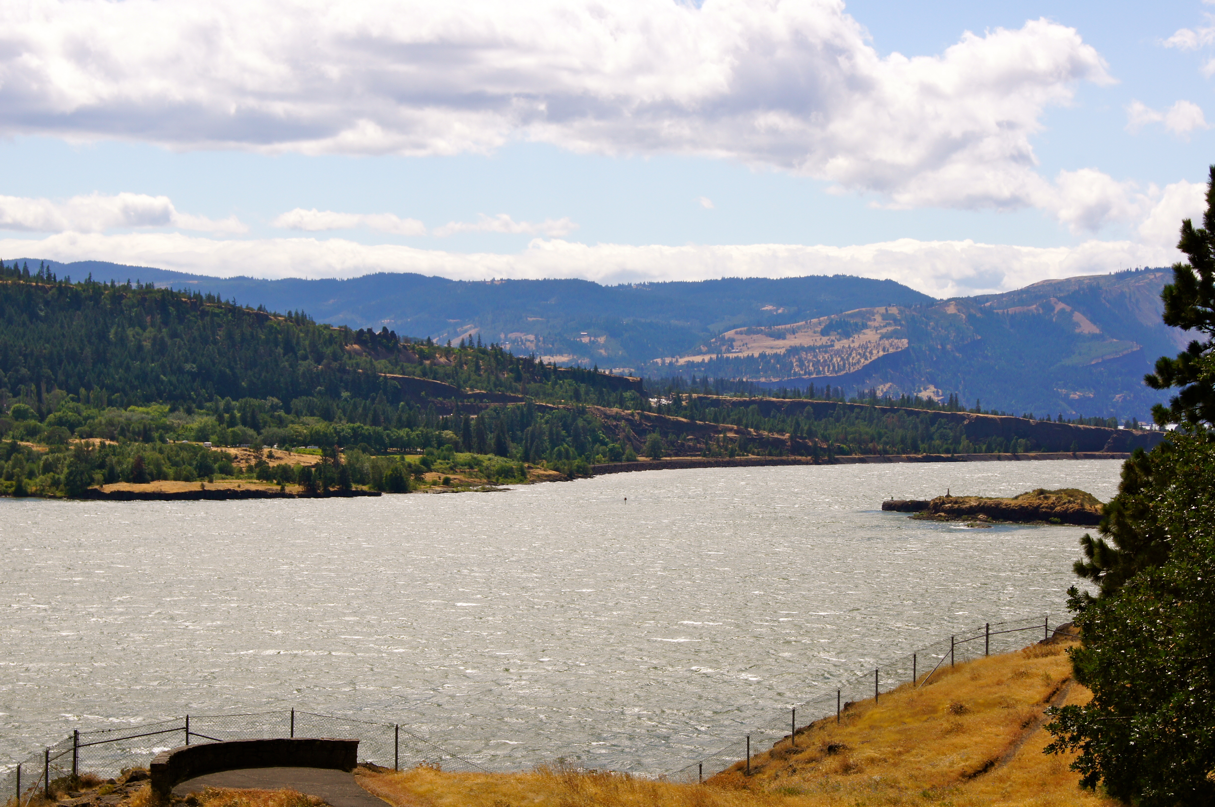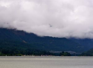 Looking back across the Columbia River towards Cascade Locks, OR. The bridge you see is called “The Bridge Of The Gods”…it is one of the many bridges that crosses the Columbia River into either Oregon or Washington.