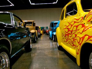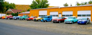 Typical scene outside the shop…lots of kooool custom cars in front of our old-fashioned service station!