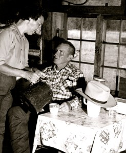 One of my favorite pictures of my parents…I know I have shown it before….Mom was a true cook. She cooked on a wood cook stove…without running water…electricity or any of the conveniences. Ranch crews in the early years ranged from the average of 6 to 25…Mom had no telephone or internet or tweets or facebook…cell phones…na-da for Mom to know exactly how many to cook for…but on a moments notice Mom always had enough food for whoever showed up at the dinner table and always had a smile:)
