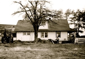 The house has changed the last 100 years, but it started out like this in 1920…with a full basement and the upstairs. It was a typical white clapboard farm house…built really good as it is very solid. When they poured the concrete for the basement they poured it deep…and the wood they used for the structure was solid good stuff as Grandpa spared no expense as he wanted the best for his Mother. This picture would have been in the 1950’s…about 35 years after the house was built. I think that is my Dad on the tractor on the left, he is moving dirt in prepping the site for the concrete patio…and I think that is one of my uncles off to the right.