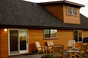 We chose a Hardie Plank Red Cedar siding as it matches our log fence and also the cedar bat and board shop. I love how it came out!!! The garage doors need to be painted yet…and we still have to re-do the patio.