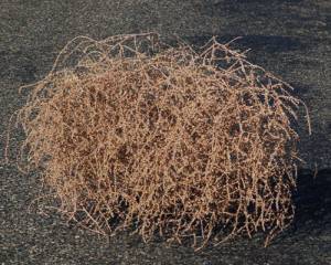 In case you have never seen a tumbleweed…this is a tumbleweed…they have stickers all over them. They grow green with the stickers and when they dry out they break off and the wind carries them away as they tumble off and roll. They can block a road and they can pile up against a wire fence…a few yeas ago I spent a month pulling them out of our New Zealand fences and then burning them in a pile. Songs have been written about them…new swear words were created because of them and they have been used to decorate with twinkle lights in them…I prefer to burn them:)