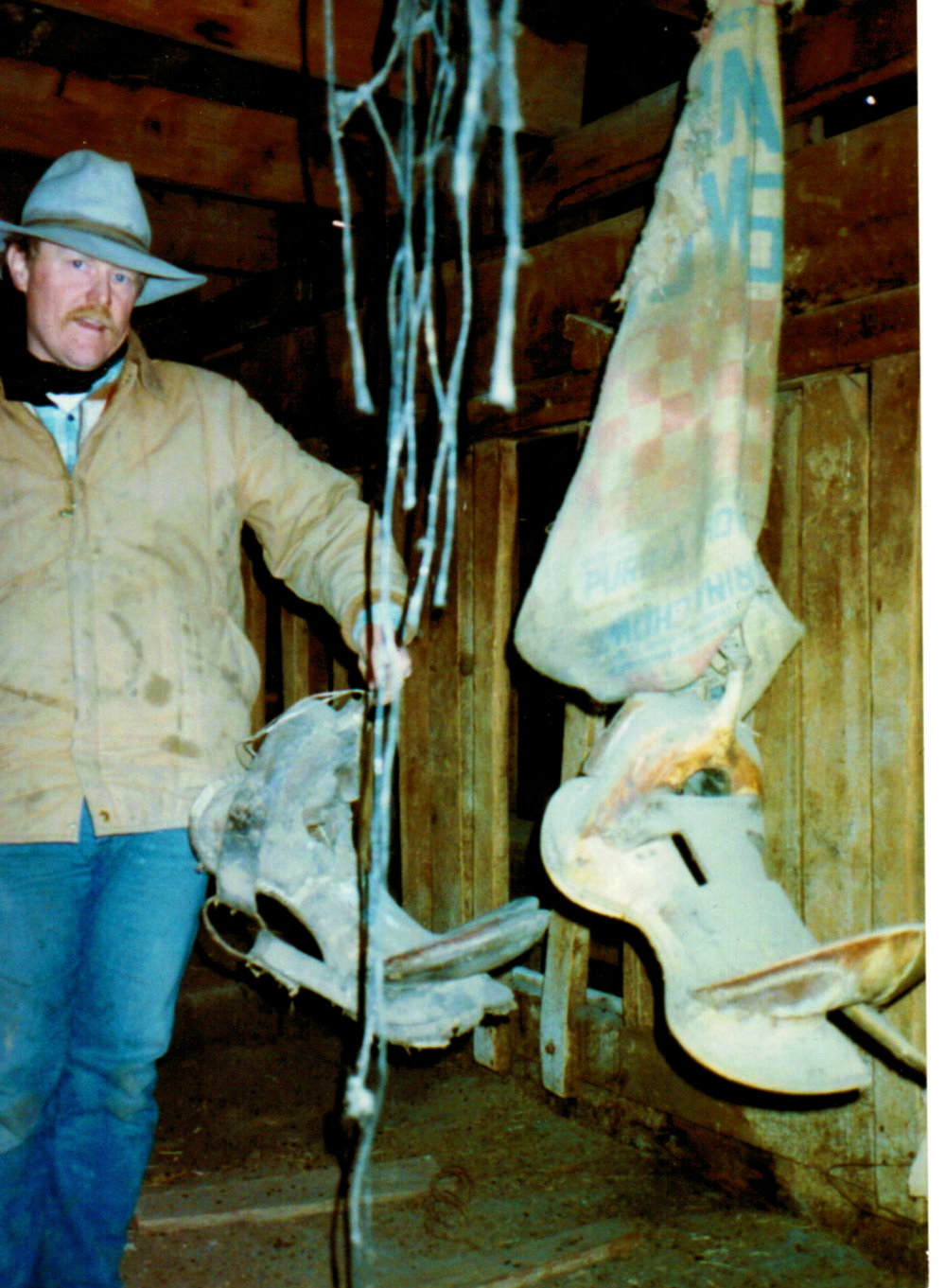“Wild Bill” catching cows…and by the way…he did not know this at the time…but he twisted his ankle that morning when feeding…by the time night fell he was in a cast…it was broken! Rough and tough and hard to bluff….”Seriously hon…are cowboys smart or just rough and tough?”