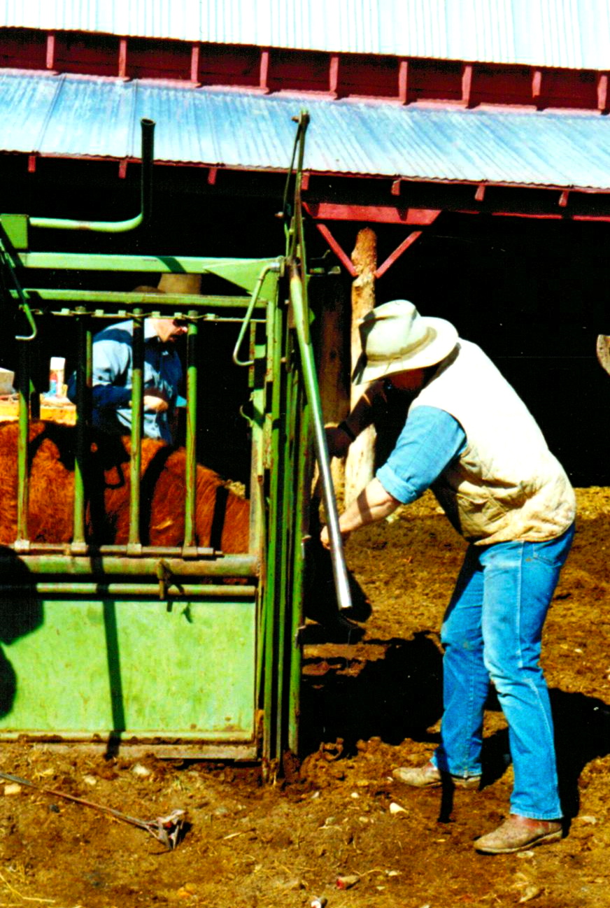 See the red hair…that is me “Hotrod Cowgirl”…filling syringes with vaccines and seeing what I could do to help…while Steve gets the branding iron hot.