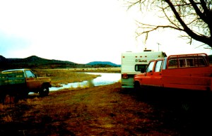 Of course we both had pick ups…the bright red pick up was “Wild Bill’s” and the pick up on the right was mine…we still have her here at the ranch…her name is “Della Dually”. We name all our vehicles…I know kind of odd…but that is what you do when you live in the middle of no where…you get creative! The F-100 Ford pick up on the far left was one that we built of course…we sold it and heard it went to Nevada…”Wild Bill” finished the frame off resto on it the winter before we moved…yes he converted it to a four-wheel drive…awesome and that is my husband. Oh yeah..his red pick up was named “Red”…good one huh? It took us many hours of thought!
