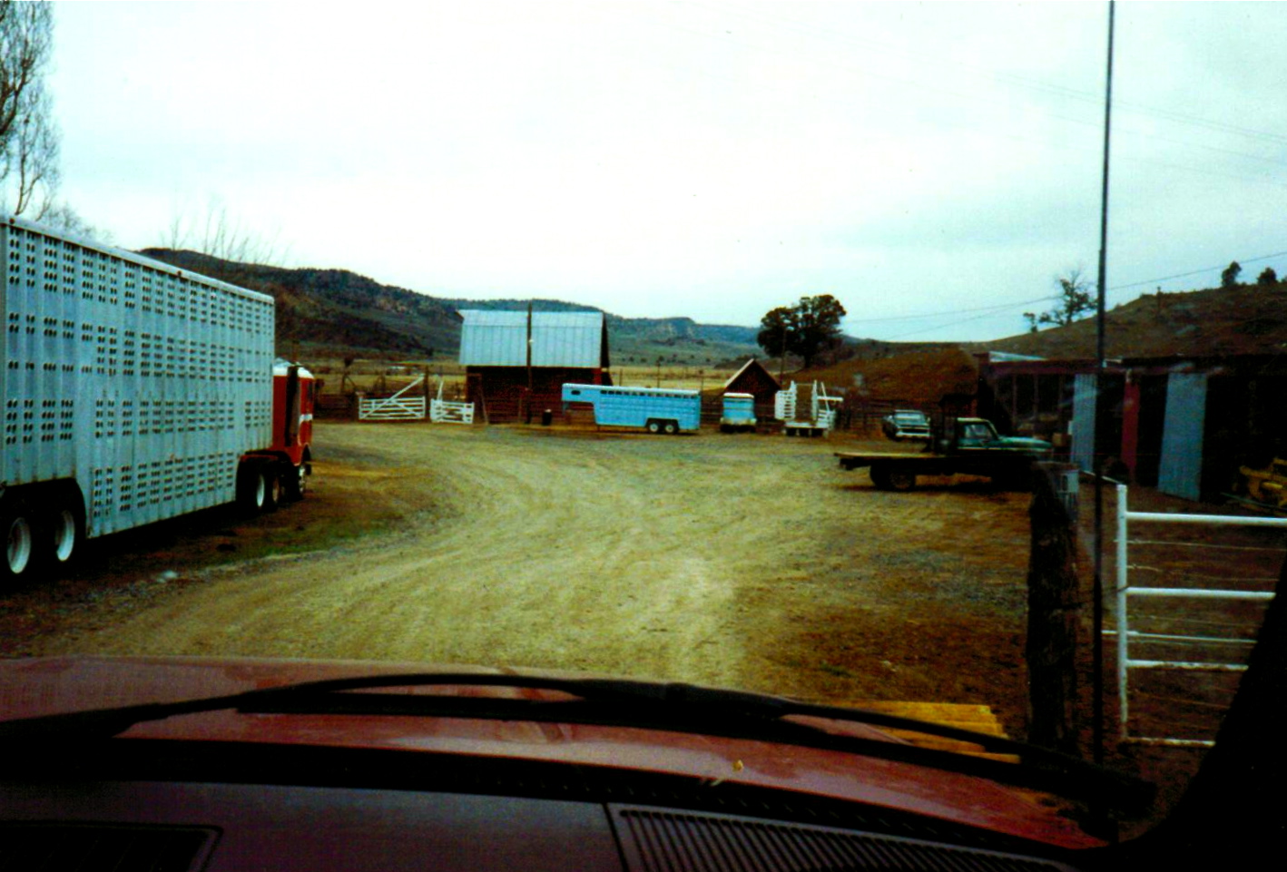 Heading back to the headquarters…AV cattle truck on the left…machinery shed on the right…what was called the milk barn in front of us…to the far left was a large red barn that you can not see.