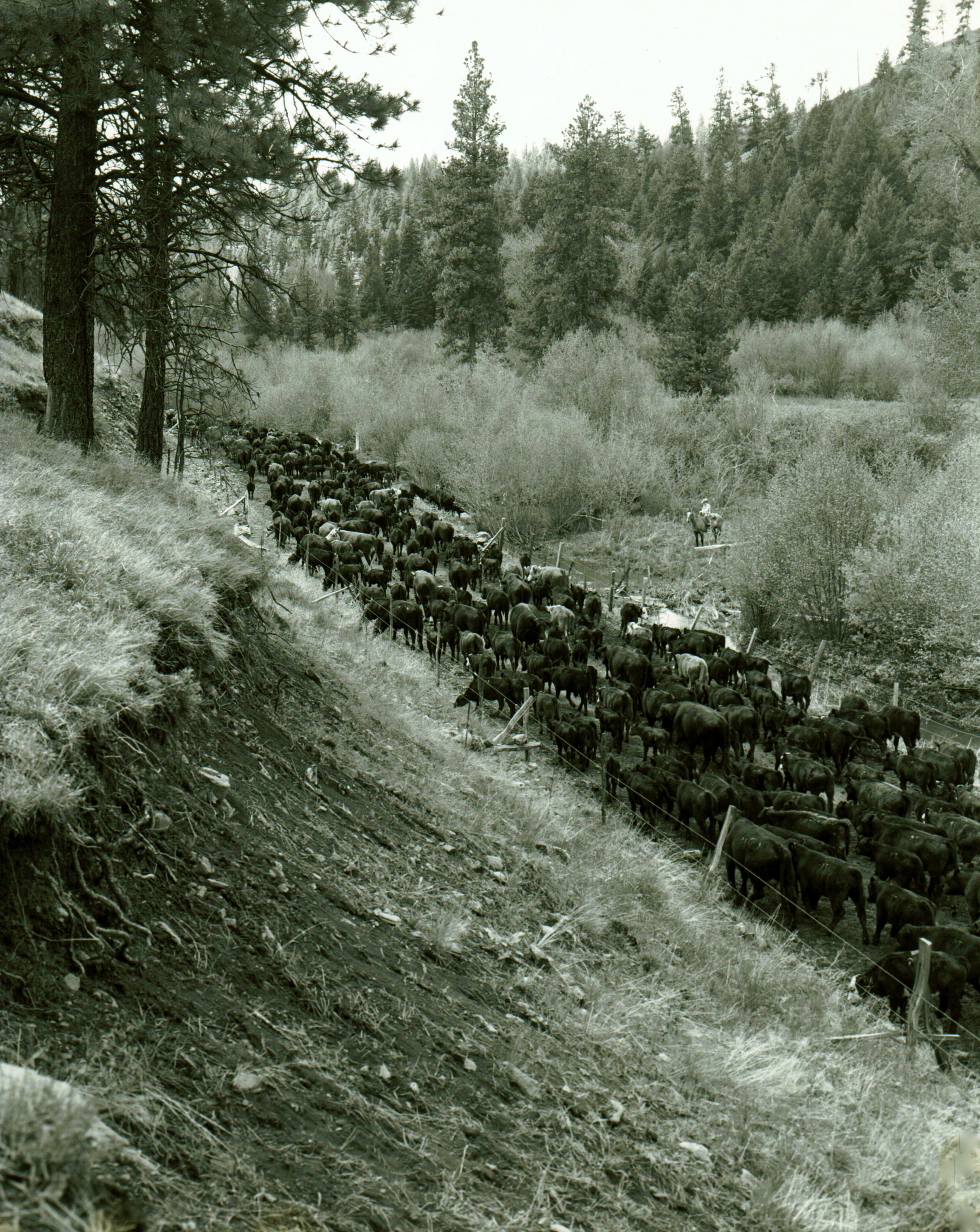 Life can not always be choreographed the way we hoped for and best laid plans can change. “Wild Bill’s” heart was to protect me however the first time Lottie and I gathered cattle my hubby could not go with me…”But WB you promised me”…ranch duty had called him in a different direction that day…part of being the boss. After several of us got the cows settled into the new pastures we were headed for home moseying along the trail…we had spent a long day of gathering and moving cows…it was a beautiful summer evening and we had accomplished our job…we were heading home for dinner…little did we know.