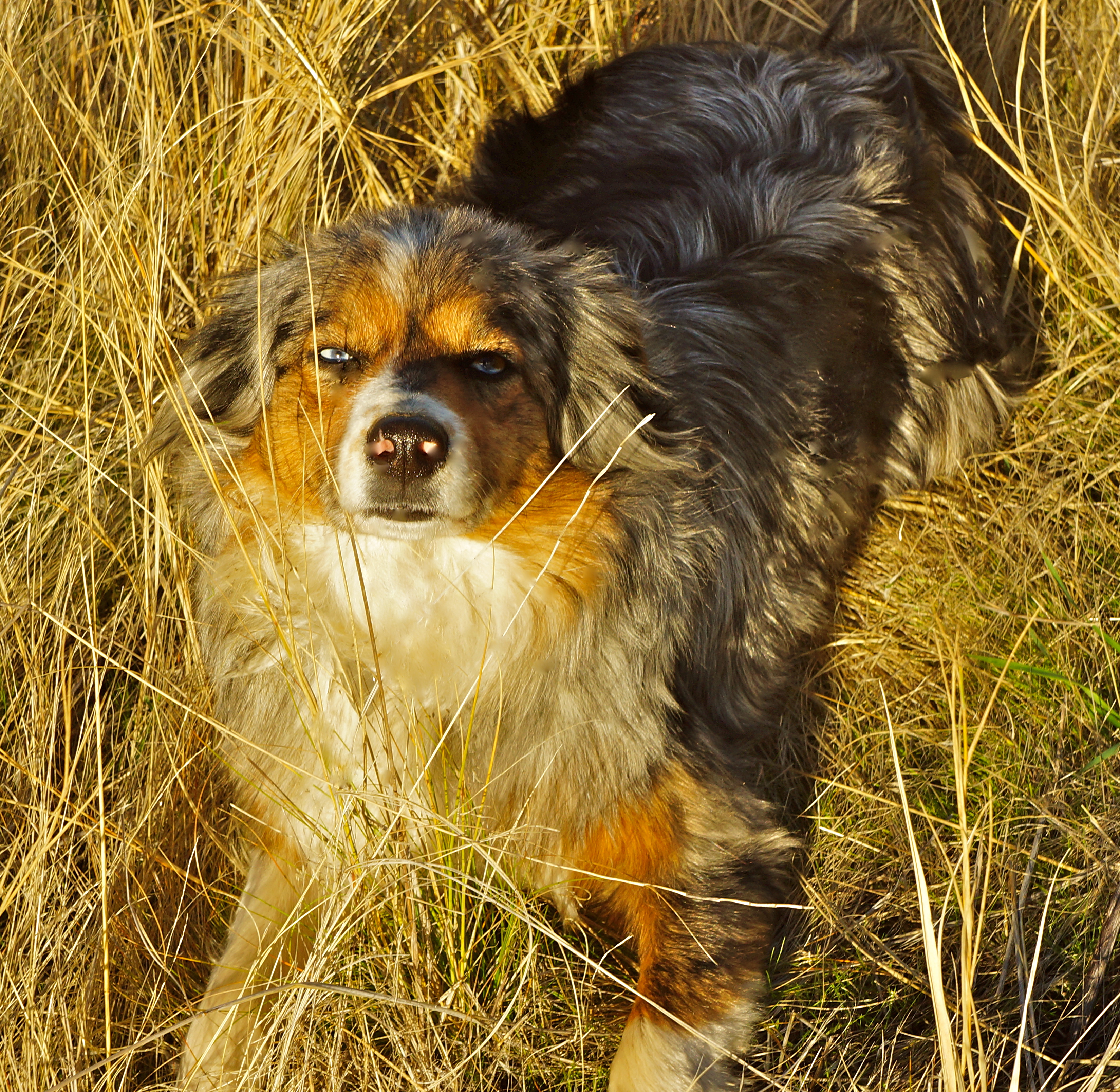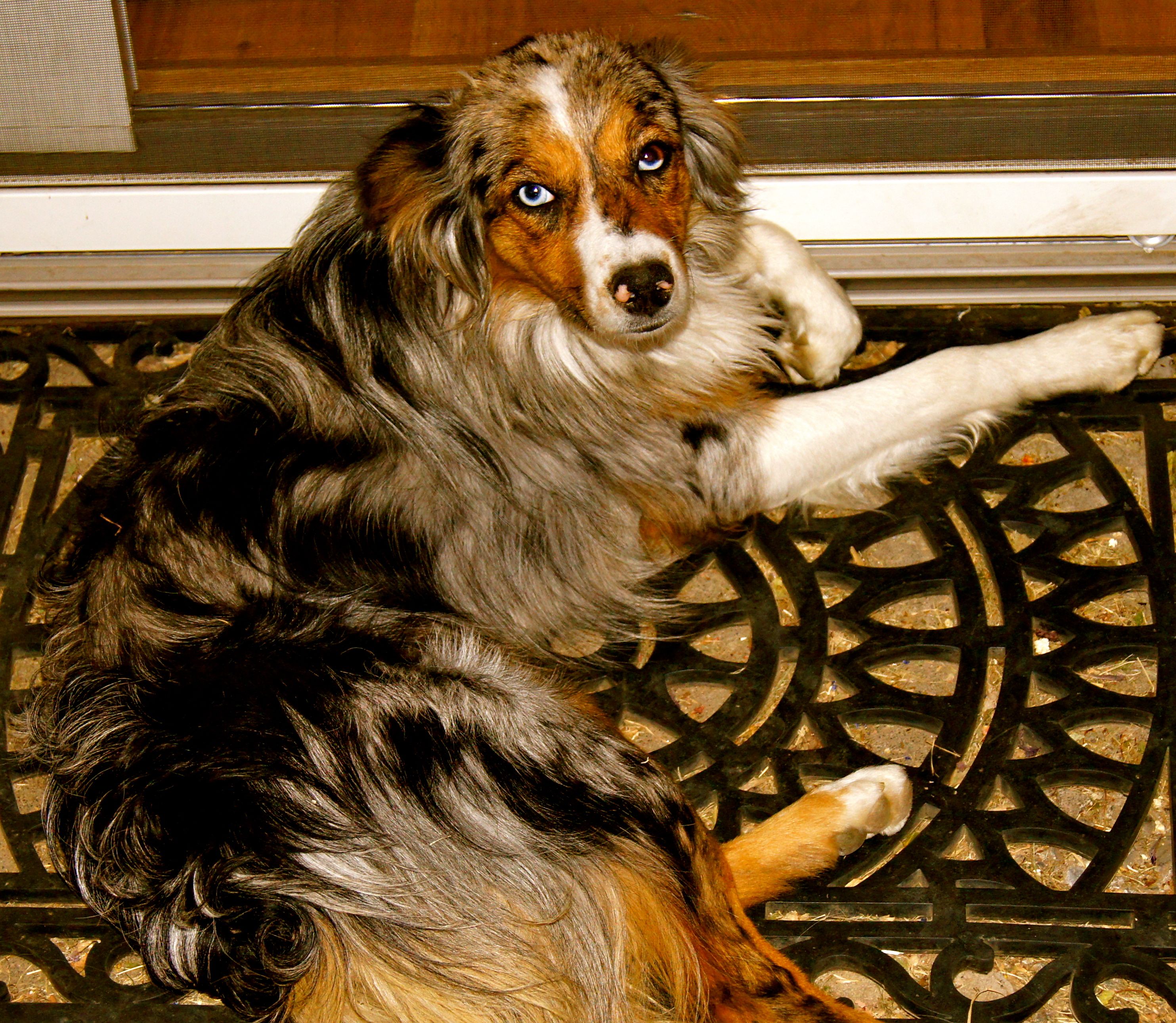 Kiah was immediately part of our hearts…she was full of love and so full of spirit. Our other three Aussie’s loved her too…Auz, the oldest in front just grunted at her and that was it. Dash liked playing with her and she loved to playfully grab his ears in her dog game version of “Speed Runs By Dasher To Grab Ears Hee-Hee.” Tucker in the back was not a huge fan at first as she had been the only girl for several years.