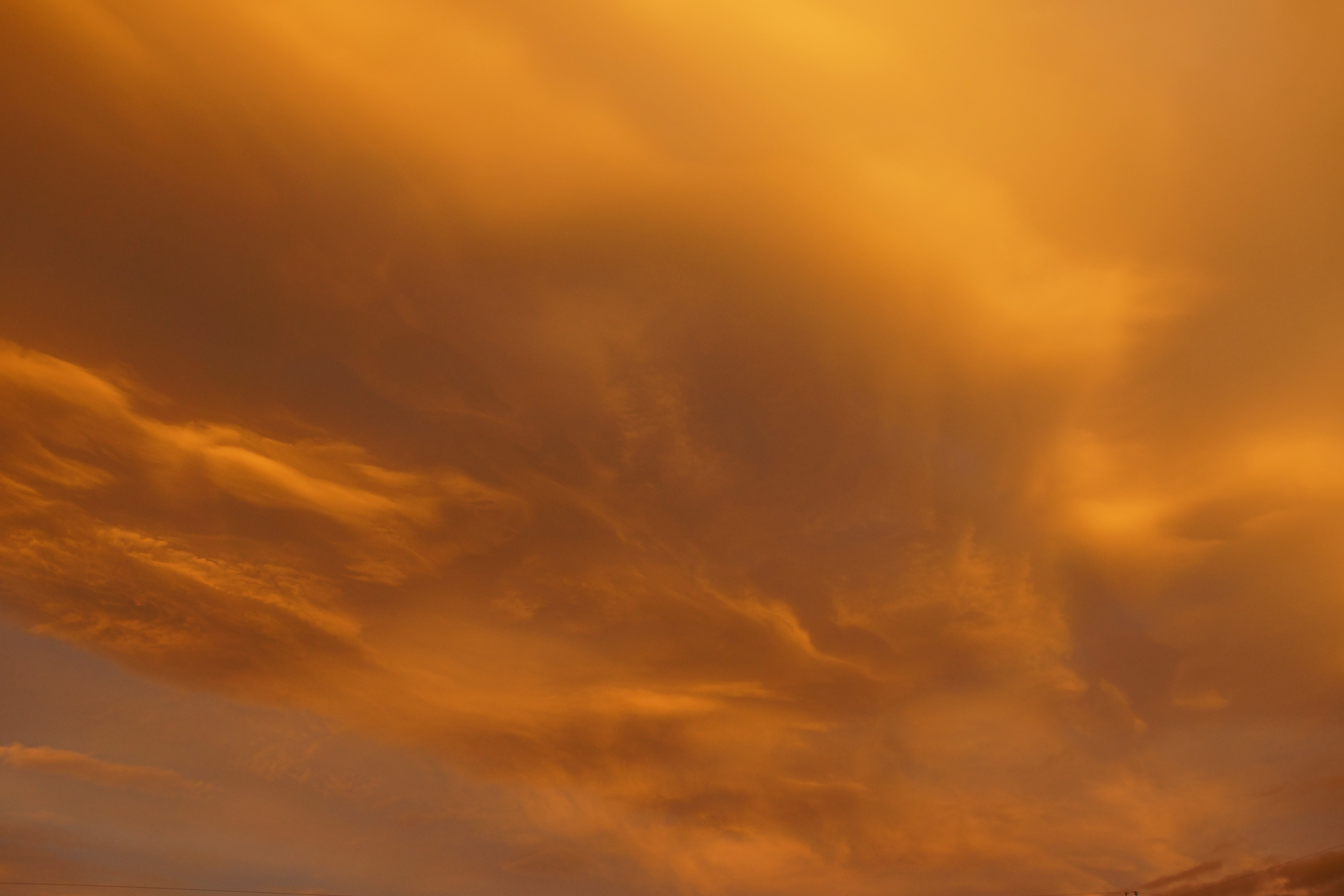 Clouds with all kinds of layers and odd shapes…filled with golden swirls and colors of ember golden light.