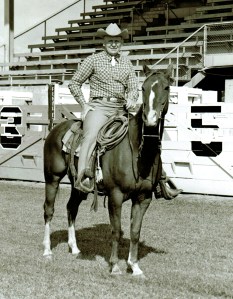 Another picture of my Dad on my mare Lottie in 1986. Dad was inducted into the Round Up Hall Of Fame in 1990….his plaque names him as “The Cowboy President”….the cowboys who came to compete liked him as Dad was able to make changes that helped them out as well as talk to them as a cowboy himself.