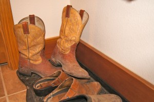 These are my shoes…pretty much boots and outside shoes here…cowgirl stuff as in daily grind…for Round Up I will shine up my Boulet boots in the back corner.