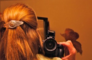 Ok this is a hair clip my hubby gave me…I tried to take a picture of it in the mirror…not sure if you can see the bucking horse on my hair clip…but it is there.