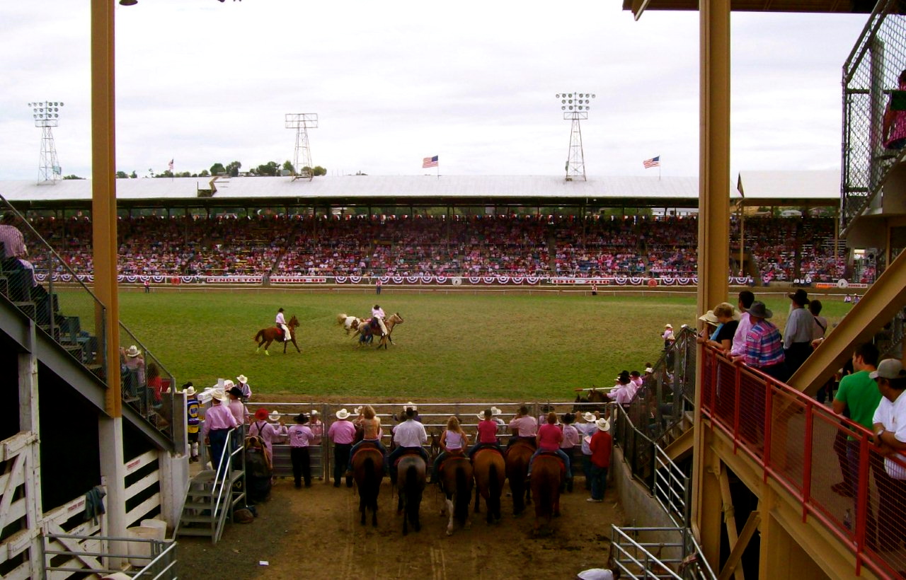 The grand stands are full with a cowboy-cowgirl crowd ready to see some rodeo.